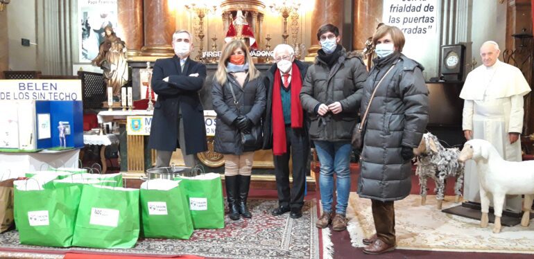 El Padre Ángel solicitó productos de alimentación y ropa durante la tormenta Filomena en enero del año 2021. En la fotografía vemos a Cristóbal Valderas, Ana Lancho, el Padre Ángel, el Padre Damián Montes y Junibel, asistiendo a la llamada del Padre Ángel llevando ropa y alimentos.